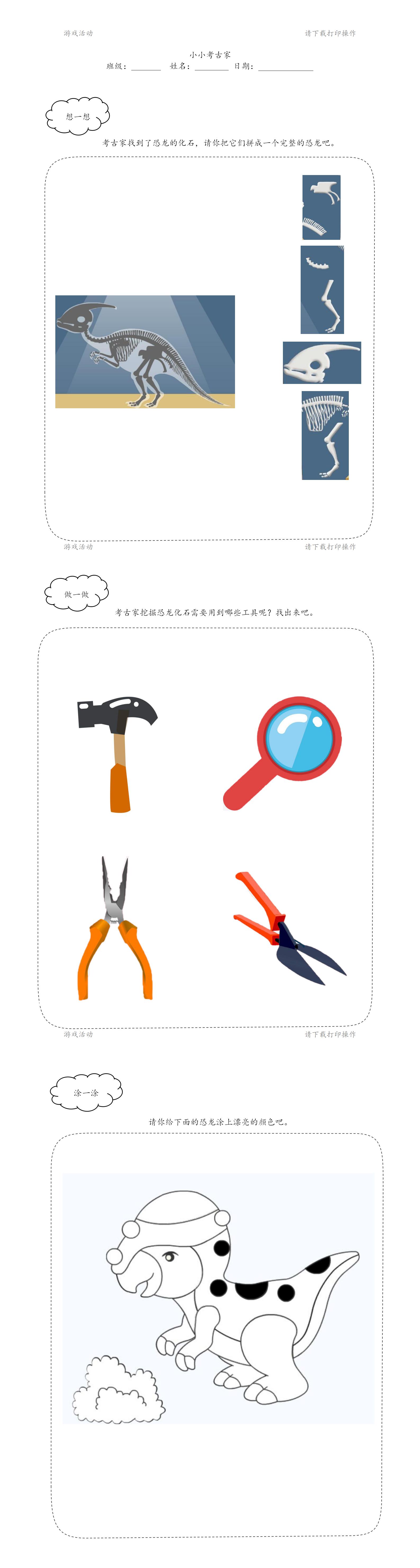 三、让幼儿说一说自己如果是小小考古家,会如何去挖掘恐龙化石呢?