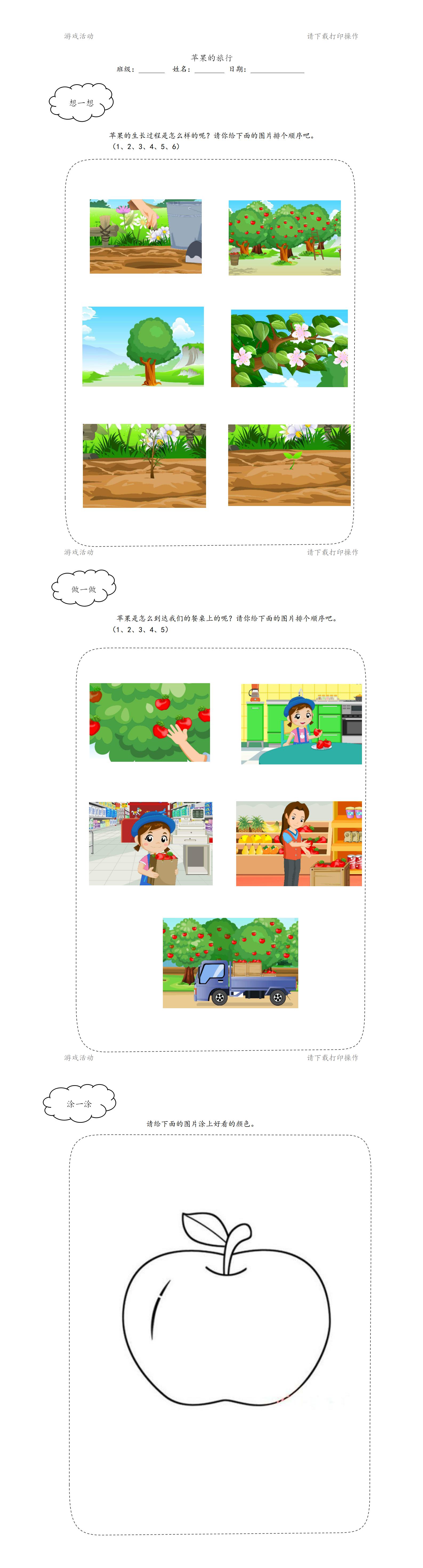 活动重点:知道苹果的生长过程,了解苹果从农场运输到城市的过程。