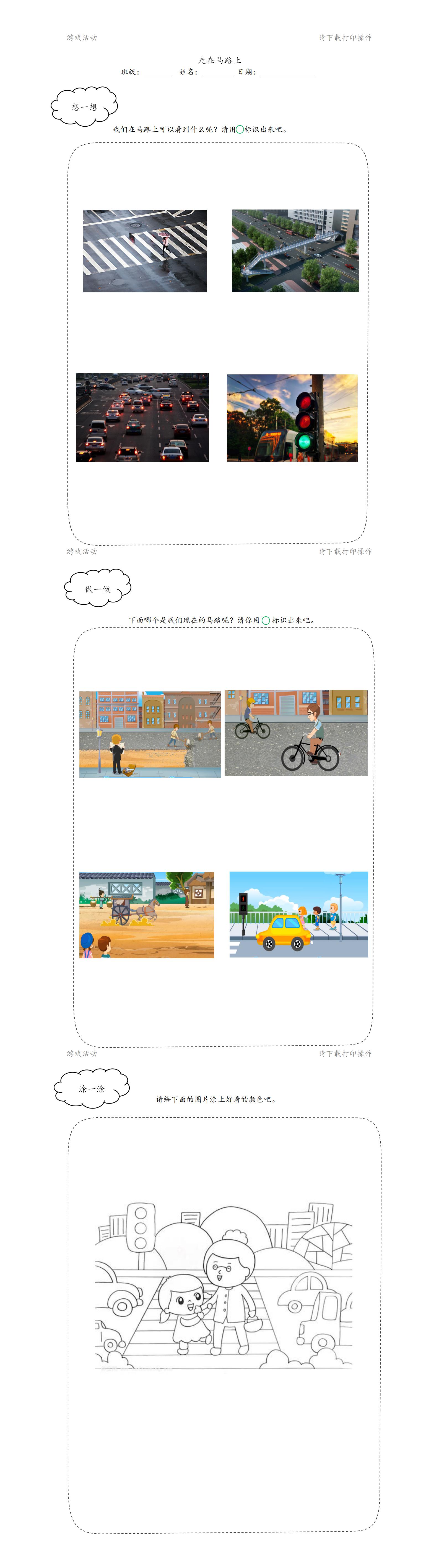 经验准备:在马路上有行走的经验。